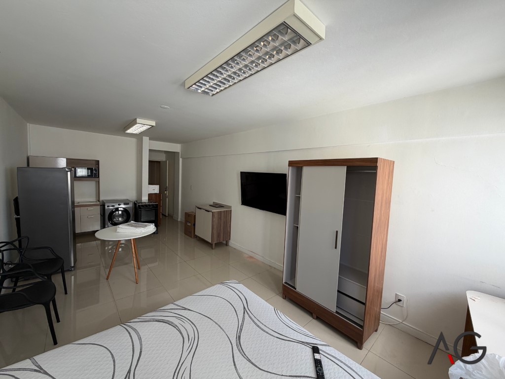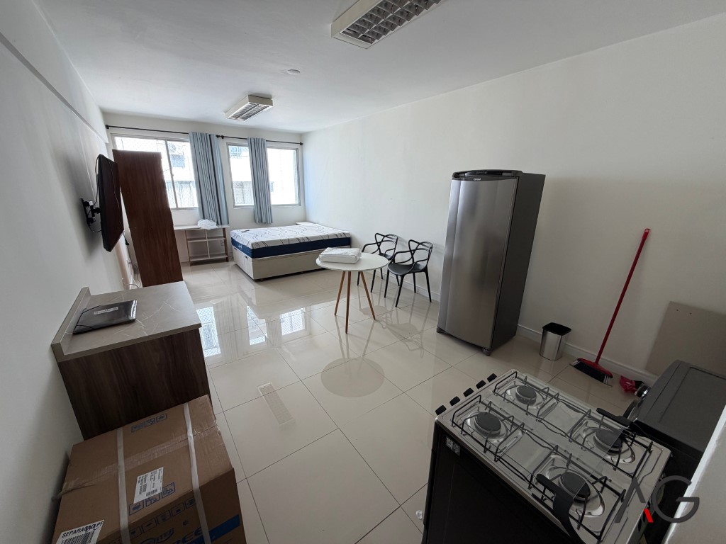 Kitnet no quarto andar do Ed. Jowi localizado na Av. Josué Di Bernardi, 239 em Campinas, São José/SC próximo ao Direto do Campo, Farmácia Preço Popular, pontos de ônibus e as demais facilidades do dia a dia. Condomínio com portaria eletrônica 24h, elevador, salão de festas e zeladoria.